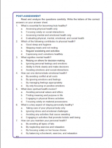 40-item (Grades 4-5) or 50-item (Grade 7-8) exam that determines what students learned after the unit