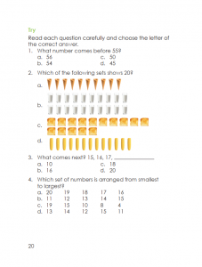 • Contains exercises that strengthen the students’ numeracy skills and processing questions that create self-monitoring opportunities for students