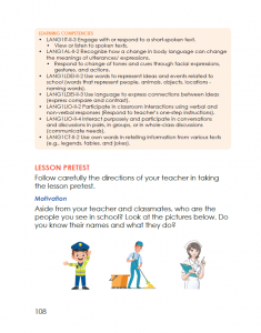 Lesson Opener shows the lesson number with the lesson title. In the sidebar are the target learning competencies and the lesson theme.