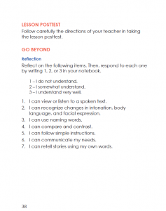 Post Test includes a 10-item assessment tool that evaluates the extent to which young learners acquired the focus learning competencies of the lesson, helping them identify areas that may need review.